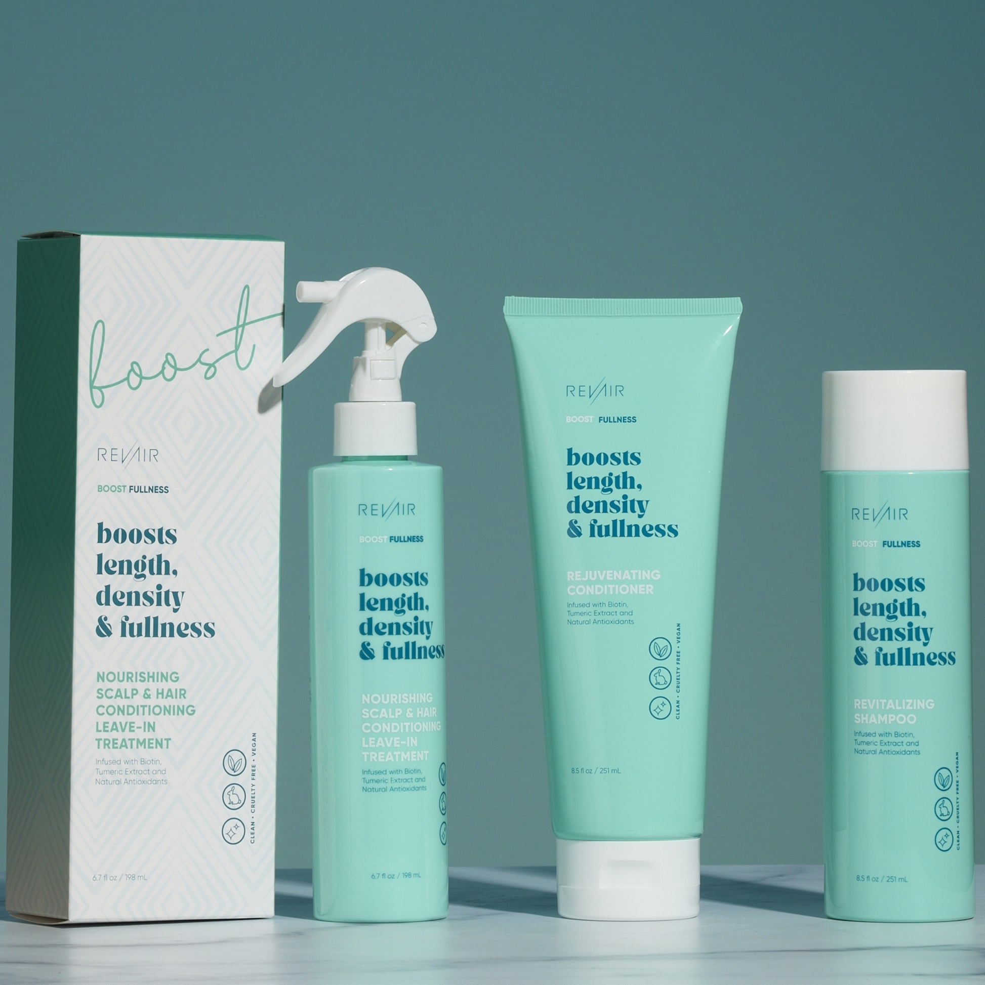 Our Boost Fullness Rejuvenating Conditioner for hair growth restores moisture to your scalp and strands with every use to help promote a healthy growing environment.
