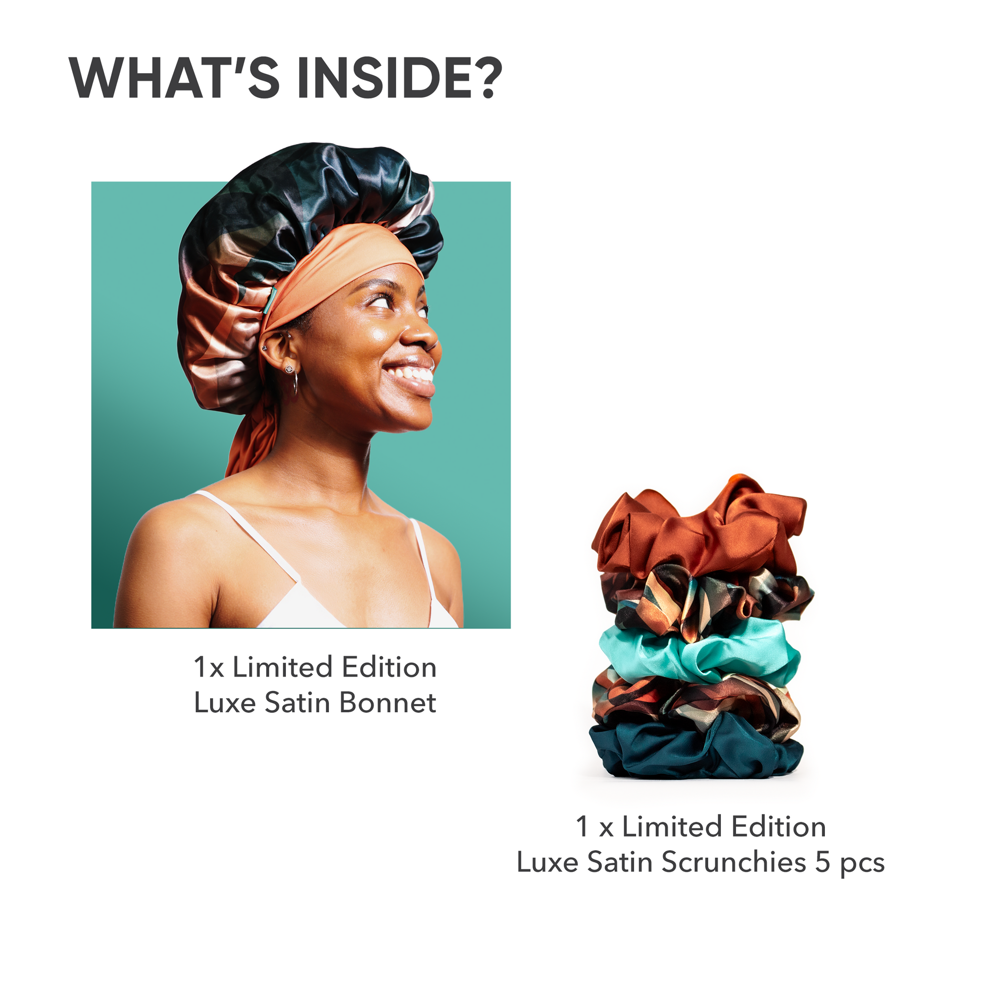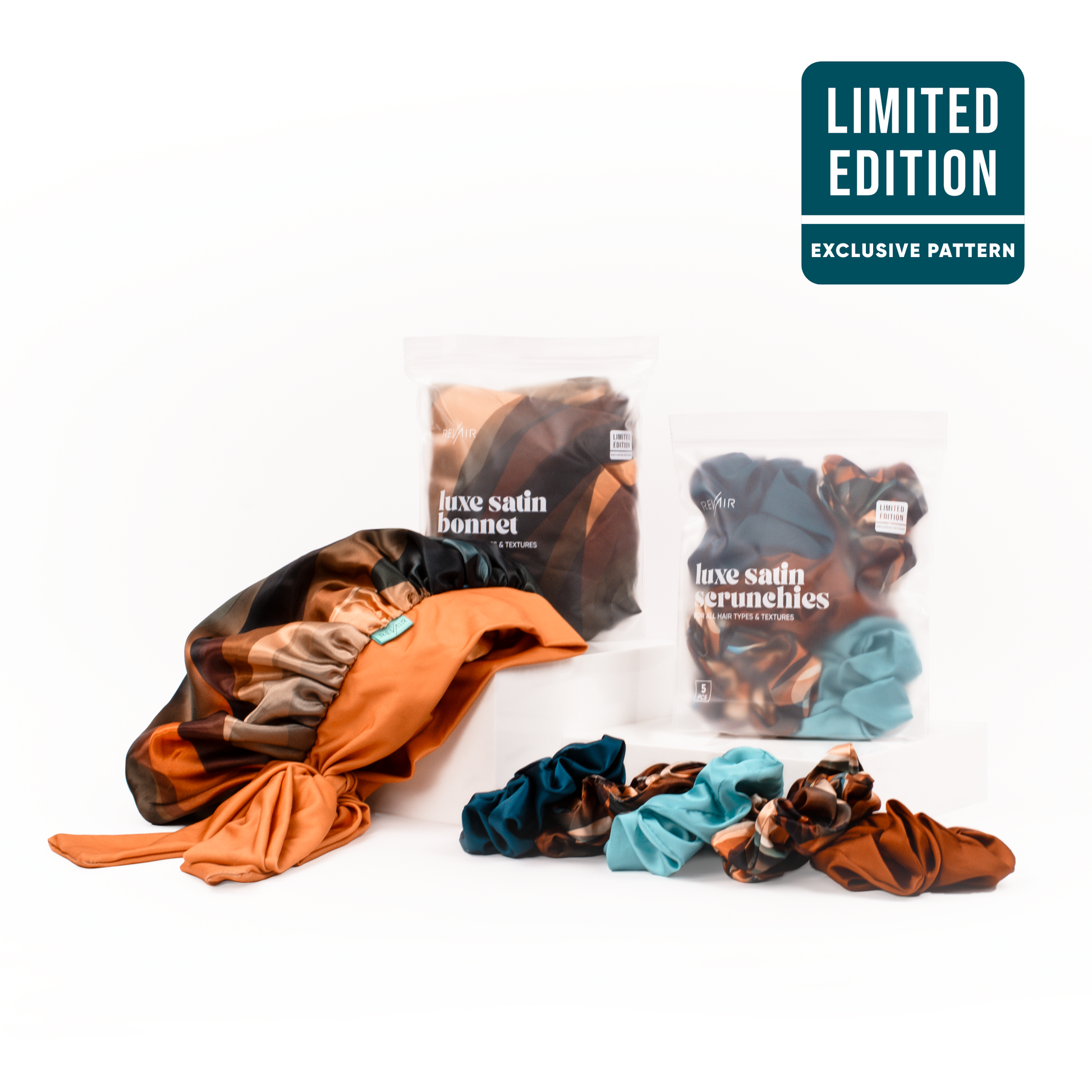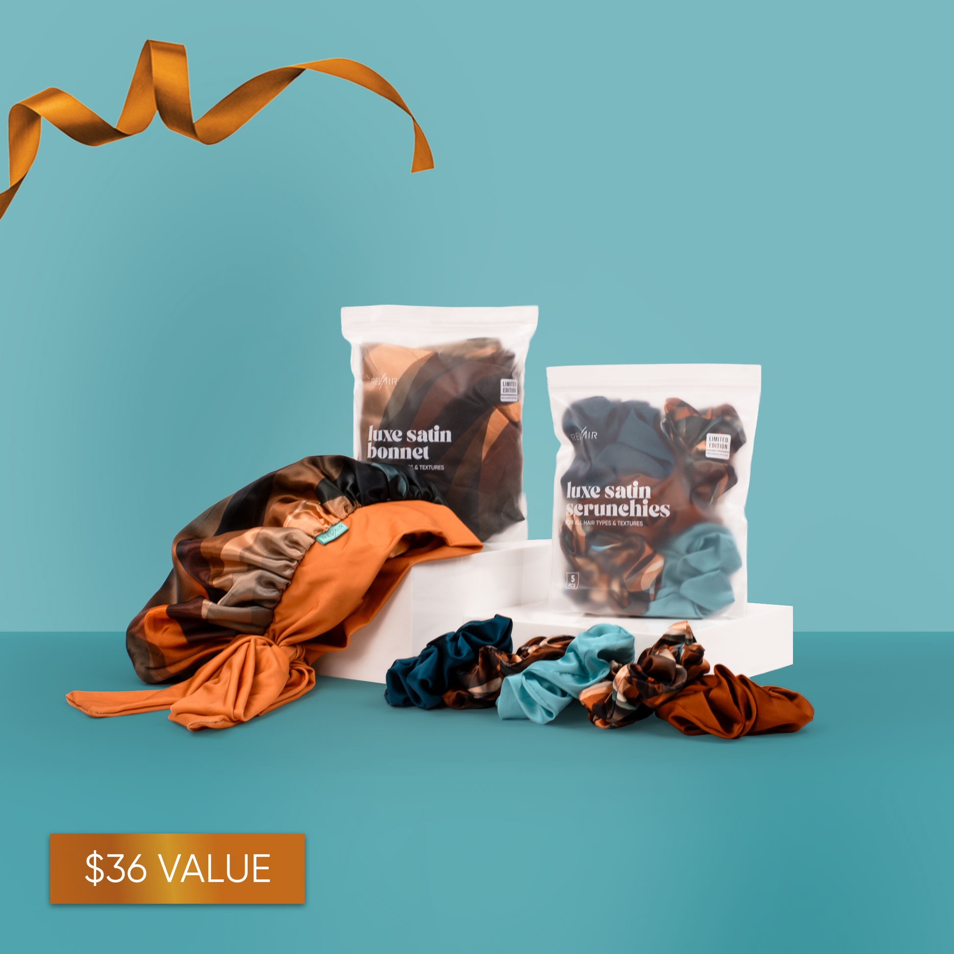 Your strands deserve a little luxury. The Satin Set combines a matching 5-pack of scrunchies and a cozy bonnet in warm Cinnamon Swirl hues that feel perfect for the season. Protect your hair’s health while adding a stylish, limited-edition touch to your routine.