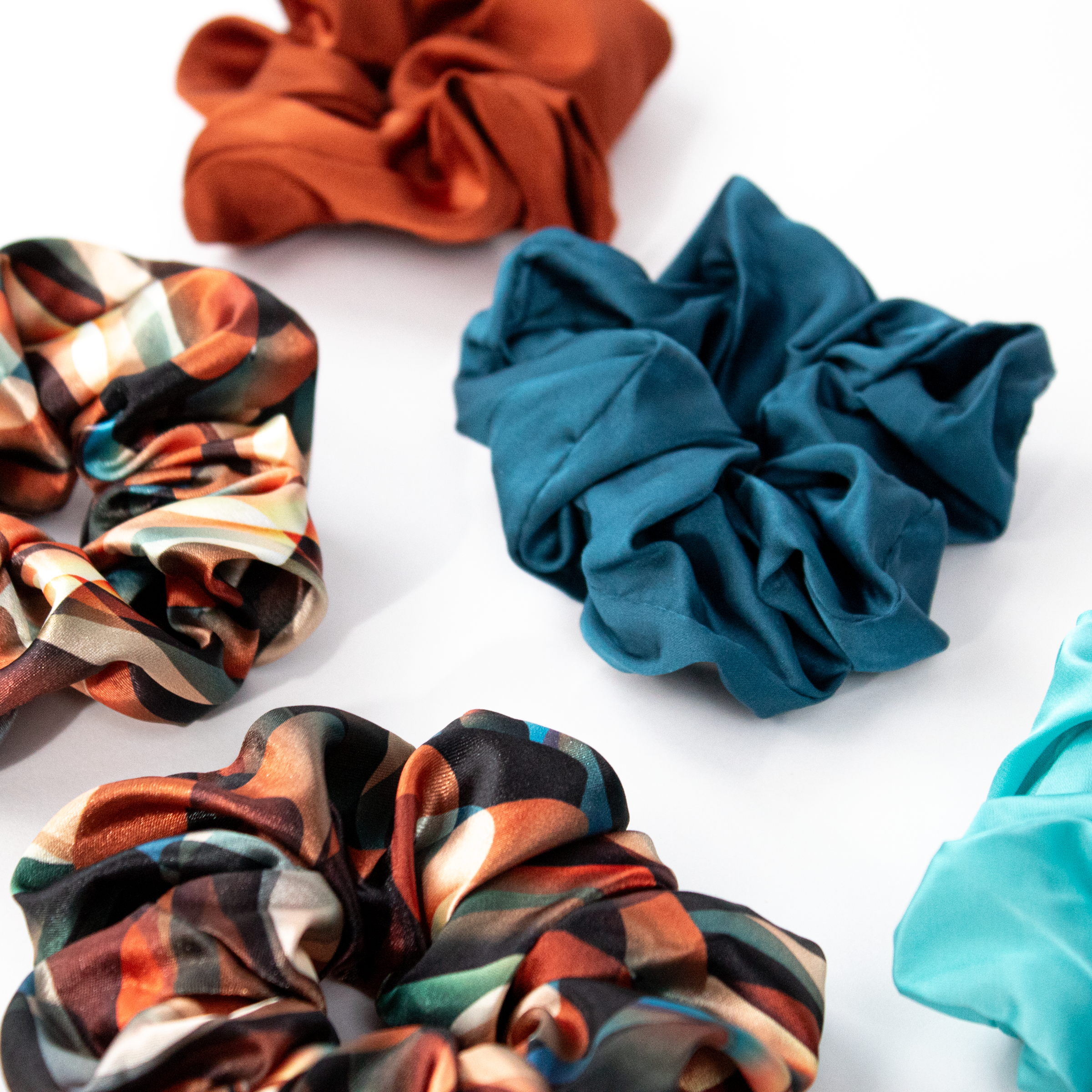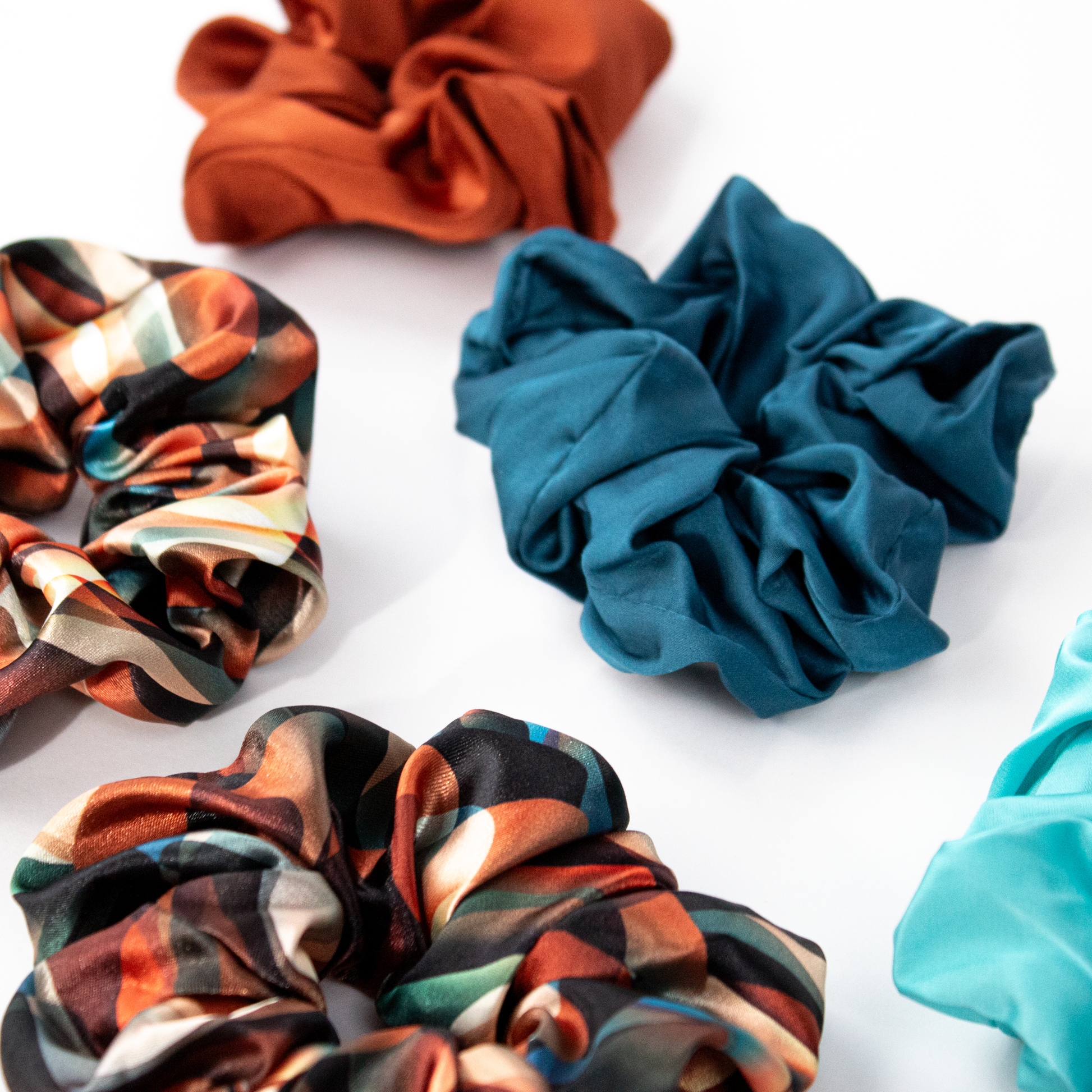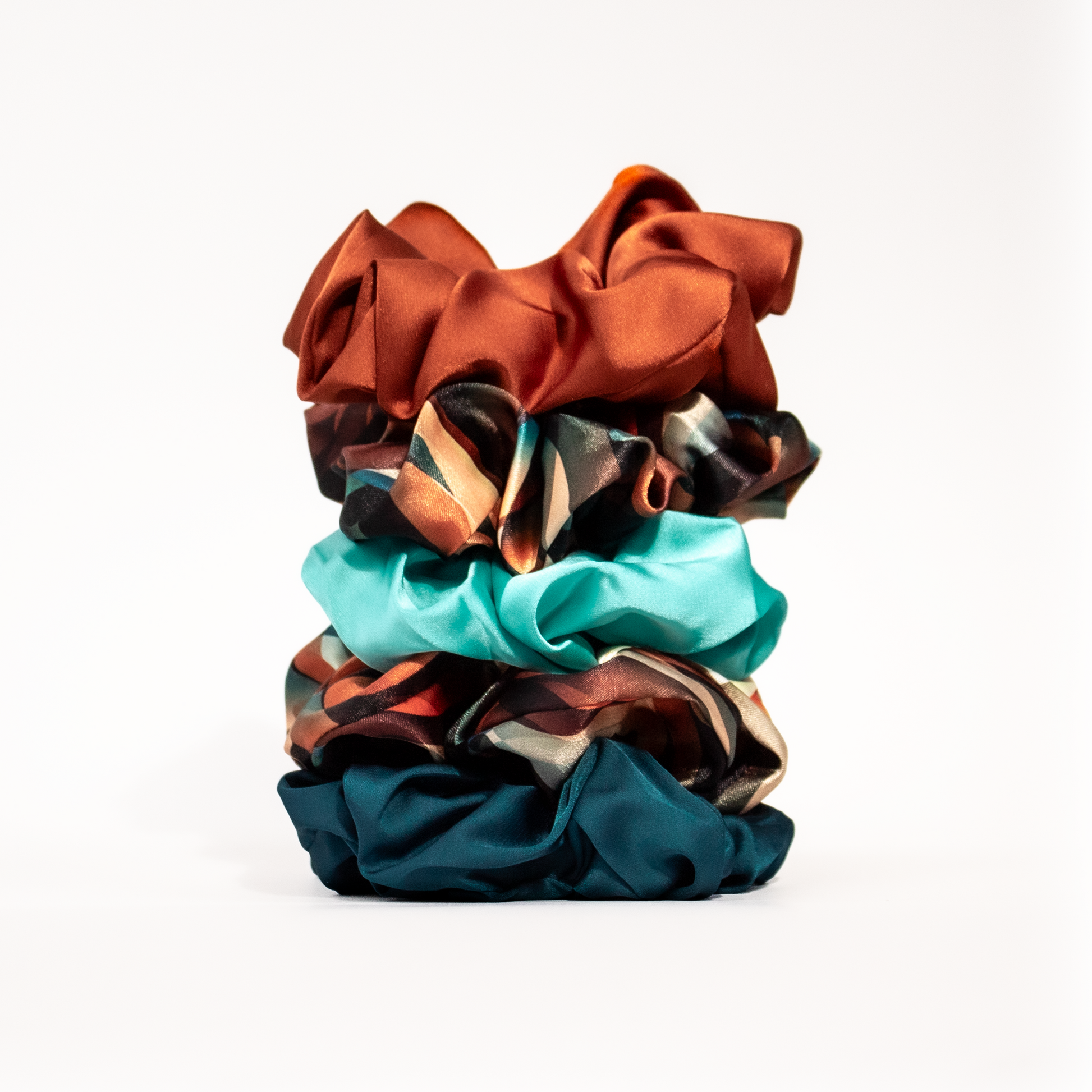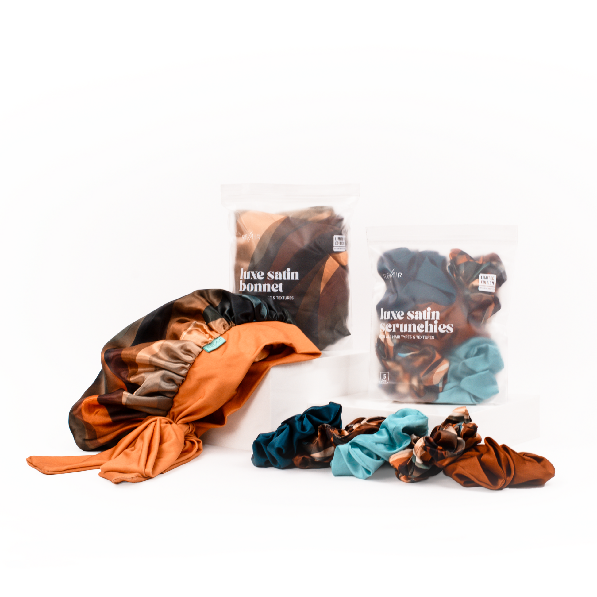 - Satin Scrunchies 5-pack (1 Set) - Hair-loving satin without the stress—in a limited-edition Cinnamon Swirl palette.